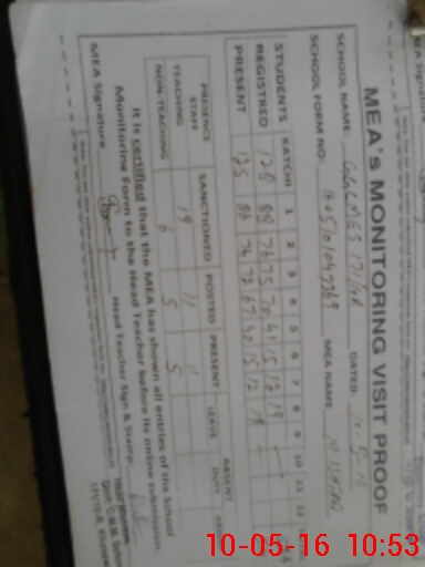 | Monitoring Date: 10-05-2016 | Start Time: 10-05-2016 10:20 AM | End Time: 10-05-2016 10:56 AM | Name of MEA: M.Is**** (S**** 03**** | |