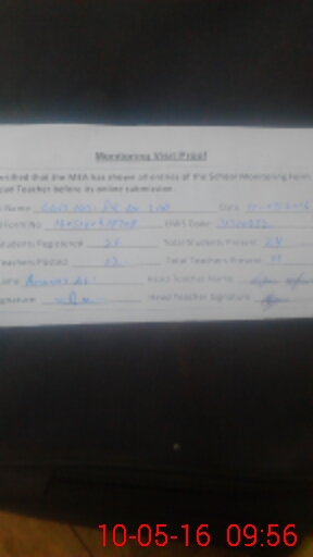 | Certified that this School was Inspected by the Undersigned MEA/DMO Today and the Information Stated Above is as Per Record. | |||||