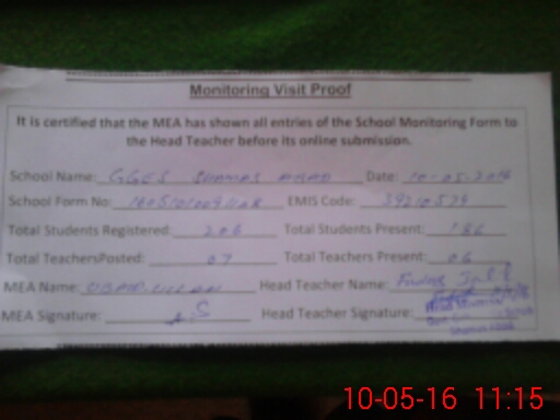 | Certified that this School was Inspected by the Undersigned MEA/DMO Today and the Information Stated Above is as Per Record. | |||||