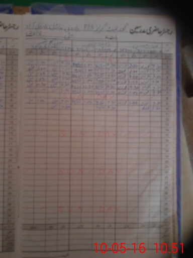 | CNIC | Full Name | Designation | R/C | Absence During Last Calender Month |