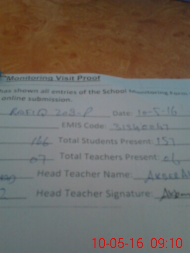 | Attendance Register | Head Teacher | MEA with School | Visit Proof |