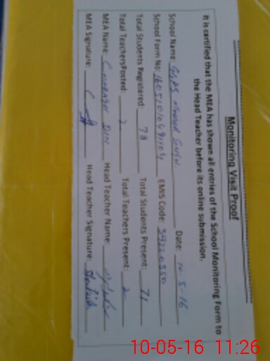| Certified that this School was Inspected by the Undersigned MEA/DMO Today and the Information Stated Above is as Per Record. | |||||