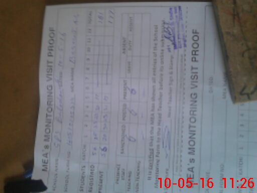 | Monitoring Date: 10-05-2016 | Start Time: 10-05-2016 10:32 AM | End Time: 10-05-2016 11:30 AM | Name of MEA: Z.**** Ba**** Al**** | |