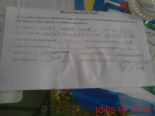 | EMIS Code: 32320598 | Name of School: GGPS SALEH WALA | |||