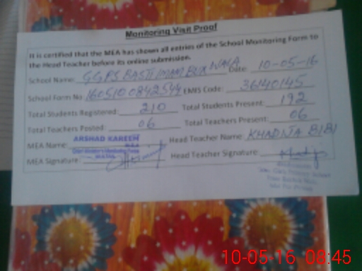| Certified that this School was Inspected by the Undersigned MEA/DMO Today and the Information Stated Above is as Per Record. | |||||
