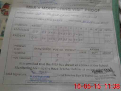 | Certified that this School was Inspected by the Undersigned MEA/DMO Today and the Information Stated Above is as Per Record. | |||||