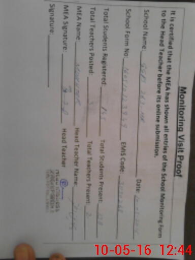 | Monitoring Date: 10-05-2016 | Start Time: 10-05-2016 12:25 PM | End Time: 10-05-2016 12:46 PM | Name of MEA: Mu**** ah**** BN**** 29 | |