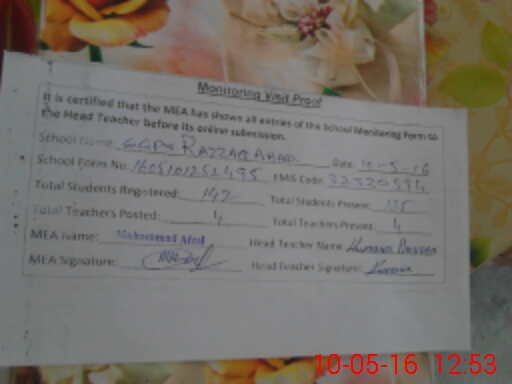 | EMIS Code: 32320594 | Name of School: GGPS RAZZAQ ABAD | |||