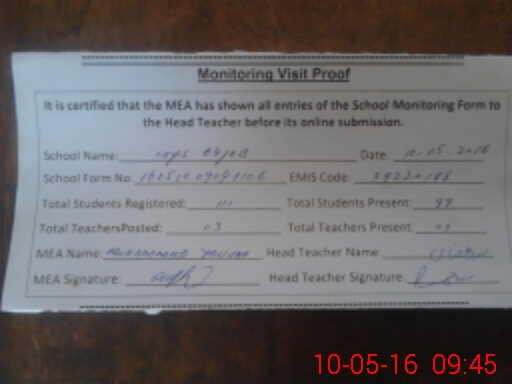 | Certified that this School was Inspected by the Undersigned MEA/DMO Today and the Information Stated Above is as Per Record. | |||||