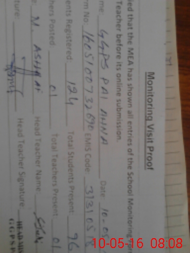 | EMIS Code: 31310518 | Name of School: GGPS PAIAHNA | |||