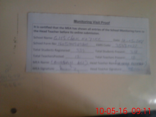| Certified that this School was Inspected by the Undersigned MEA/DMO Today and the Information Stated Above is as Per Record. | |||||