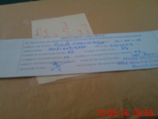 | Monitoring Date: 10-05-2016 | Start Time: 10-05-2016 09:19 AM | End Time: 10-05-2016 09:56 AM | Name of MEA: Za**** Hu**** | |