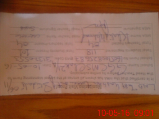 | Monitoring Date: 10-05-2016 | Start Time: 10-05-2016 08:25 AM | End Time: 10-05-2016 09:01 AM | Name of MEA: Mu**** As**** KP**** | |