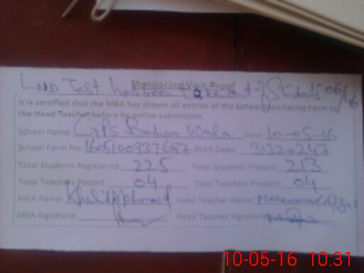 | Certified that this School was Inspected by the Undersigned MEA/DMO Today and the Information Stated Above is as Per Record. | |||||