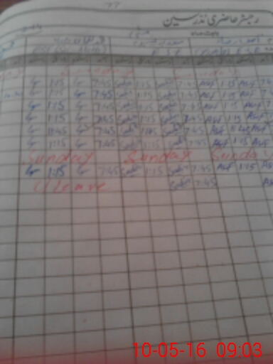 | CNIC | Full Name | Designation | R/C | Absence During Last Calender Month |