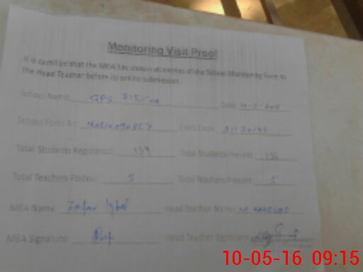 | EMIS Code: 31130144 | Name of School: GPS CHAK 315/HR | |||