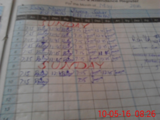 | CNIC | Full Name | Designation | R/C | Absence During Last Calender Month |