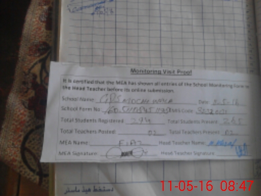 | Attendance Register | Head Teacher | MEA with School | Visit Proof |
