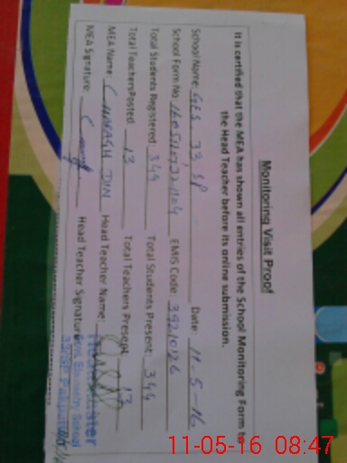 | Certified that this School was Inspected by the Undersigned MEA/DMO Today and the Information Stated Above is as Per Record. | |||||
