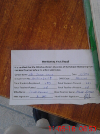 | Attendance Register | Head Teacher | MEA with School | Visit Proof |