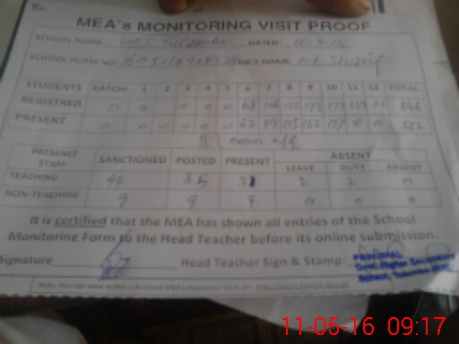 | Certified that this School was Inspected by the Undersigned MEA/DMO Today and the Information Stated Above is as Per Record. | |||||