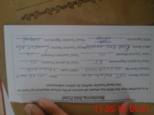 | Attendance Register | Head Teacher | MEA with School | Visit Proof |