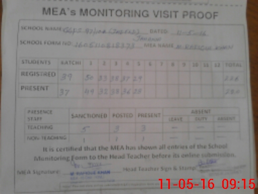 | Certified that this School was Inspected by the Undersigned MEA/DMO Today and the Information Stated Above is as Per Record. | |||||