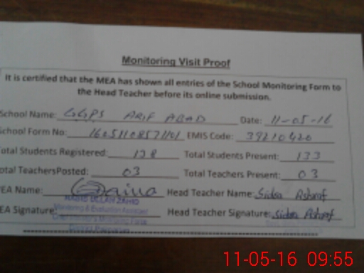 | EMIS Code: 39210420 | Name of School: GGPS ARIF ABAD | |||