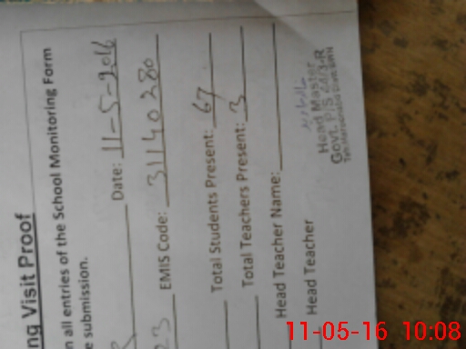 | Attendance Register | Head Teacher | MEA with School | Visit Proof |