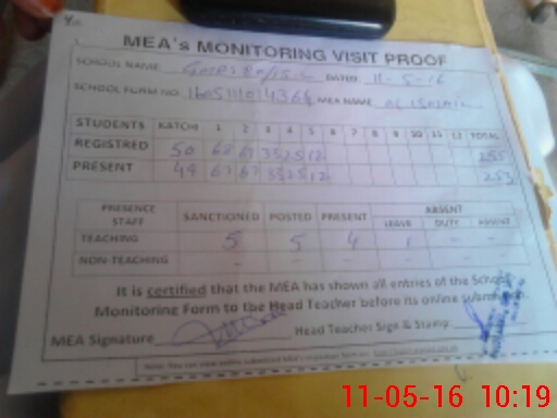 | Certified that this School was Inspected by the Undersigned MEA/DMO Today and the Information Stated Above is as Per Record. | |||||