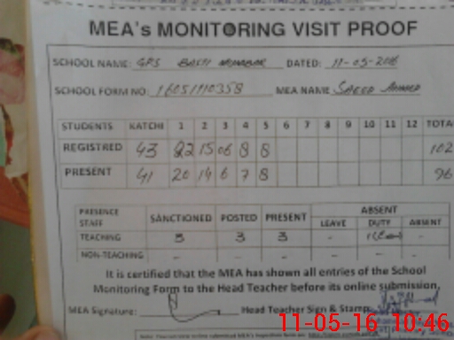 | Attendance Register | Head Teacher | MEA with School | Visit Proof |