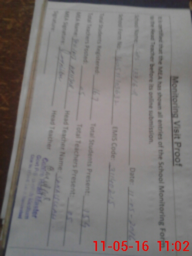 | Certified that this School was Inspected by the Undersigned MEA/DMO Today and the Information Stated Above is as Per Record. | |||||