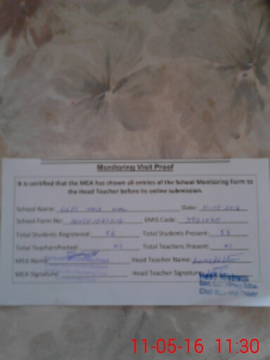 | Certified that this School was Inspected by the Undersigned MEA/DMO Today and the Information Stated Above is as Per Record. | |||||