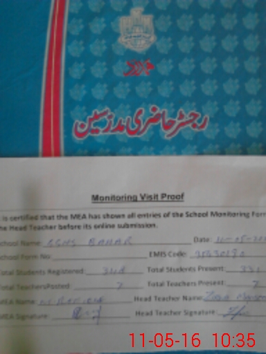 | Certified that this School was Inspected by the Undersigned MEA/DMO Today and the Information Stated Above is as Per Record. | |||||