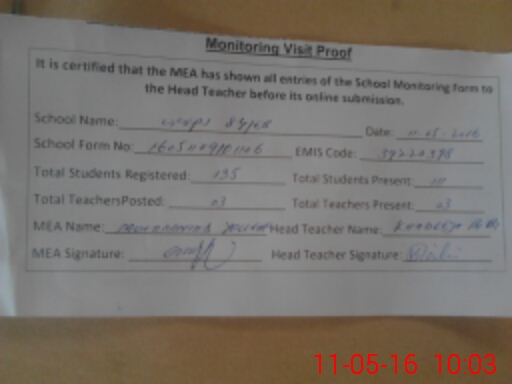 | Certified that this School was Inspected by the Undersigned MEA/DMO Today and the Information Stated Above is as Per Record. | |||||