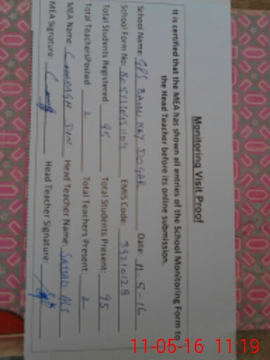 | Certified that this School was Inspected by the Undersigned MEA/DMO Today and the Information Stated Above is as Per Record. | |||||