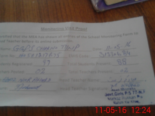 | EMIS Code: 31330684 | Name of School: GGPS CHAK NO. 77/NP | |||
