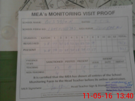 | Attendance Register | Head Teacher | MEA with School | Visit Proof |