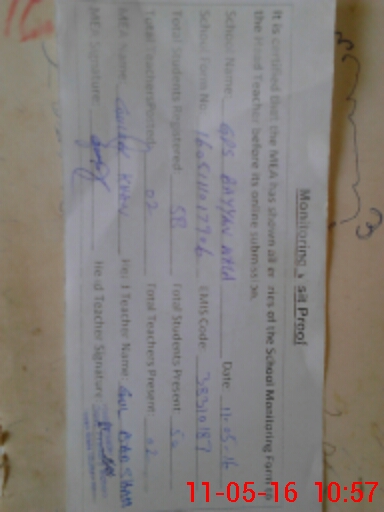 | Monitoring Date: 11-05-2016 | Start Time: 11-05-2016 10:12 AM | End Time: 11-05-2016 10:58 AM | Name of MEA: Gu**** Hu**** Kh**** | |