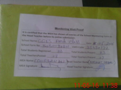| Certified that this School was Inspected by the Undersigned MEA/DMO Today and the Information Stated Above is as Per Record. | |||||
