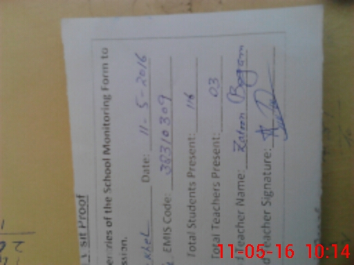 | Attendance Register | Head Teacher | MEA with School | Visit Proof |