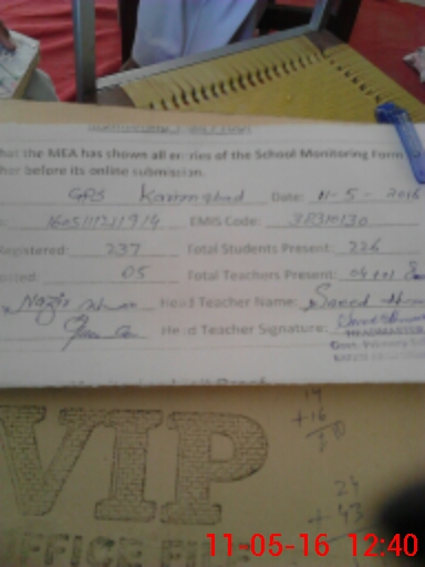 | EMIS Code: 38310130 | Name of School: GPS KAREEM ABAD KALABAGH | |||