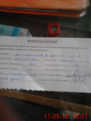 | Certified that this School was Inspected by the Undersigned MEA/DMO Today and the Information Stated Above is as Per Record. | |||||