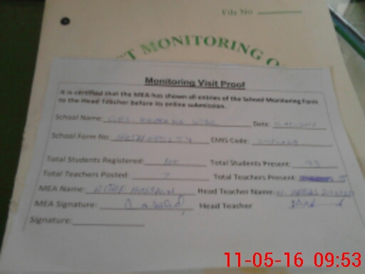 | Attendance Register | Head Teacher | MEA with School | Visit Proof |
