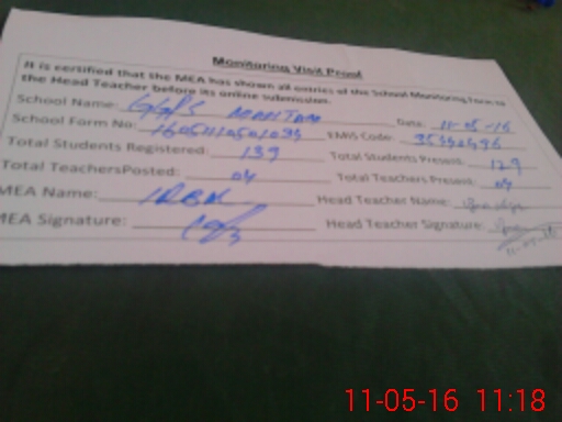 | Certified that this School was Inspected by the Undersigned MEA/DMO Today and the Information Stated Above is as Per Record. | |||||