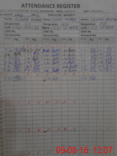 | CNIC | Full Name | Designation | R/C | Absence During Last Calender Month |