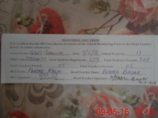 | Attendance Register | Head Teacher | MEA with School | Visit Proof |