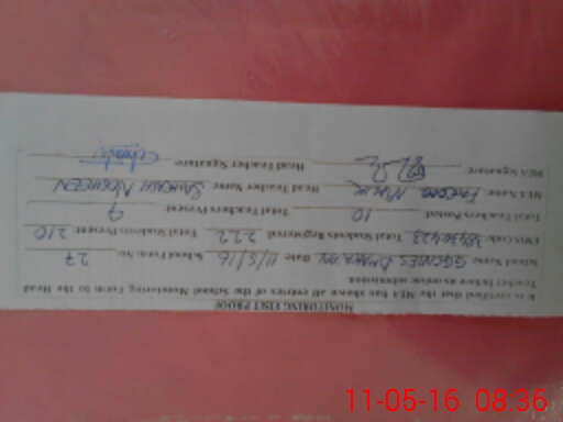| Monitoring Date: 11-05-2016 | Start Time: 11-05-2016 07:40 AM | End Time: 11-05-2016 08:44 AM | Name of MEA: FA**** AH**** MA**** (R**** | |
