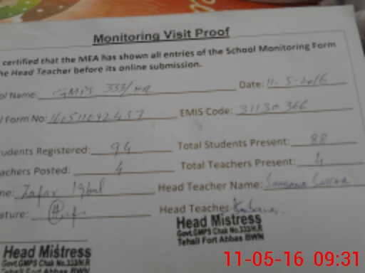 | EMIS Code: 31130366 | Name of School: GMPS CHAK NO 333 HR | |||