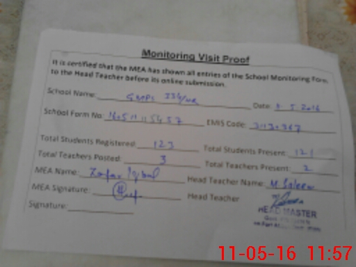 | EMIS Code: 31130367 | Name of School: GMPS CHAK NO. 334/HR | |||